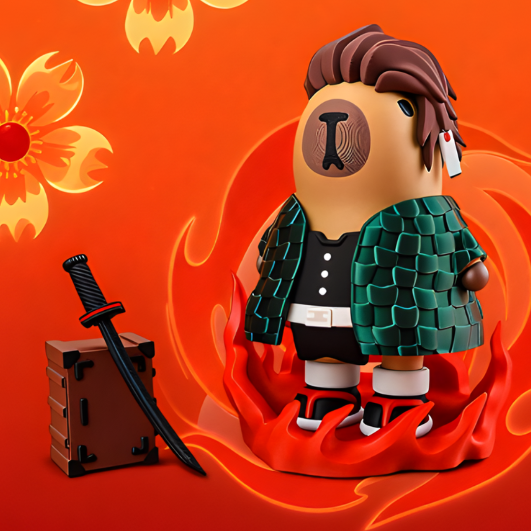 每一隻公仔皆以 3D 列印技術製成,後期由手工組裝修飾,細節充滿巧思。因非注塑件,表面會有層紋與微小瑕疵,這正是每隻卡皮巴拉獨一無二的印記。
