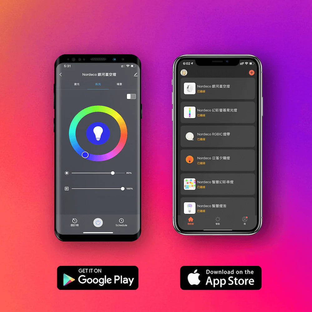 Nordeco smart lighting products are developed through the TUYA system. You can use the same APP to control multiple different products and enjoy the same experience.