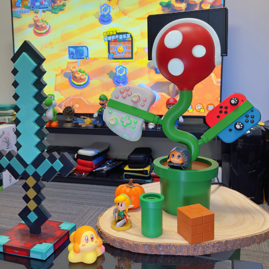 Switch 食人花多功能支架底座以遊戲花朵造型設計,張嘴便能穩固夾持主機,雙手則可固定手柄,趣味與實用兼具。不僅如此,它還能散發柔和光芒,點亮夜色,為遊戲時刻增添氛圍。支援多功能擺放與充電,內建投屏與亮燈功能,讓遊戲瞬間更有儀式感。具備 Joy-Con 充電指示燈、過充保護,還可同時為 4 個手柄充電。並配有 USB 3.0 插口、HDMI 4K/60Hz 輸出與散熱風扇,無論遊戲、觀影或日常使用,都能輕鬆應對。