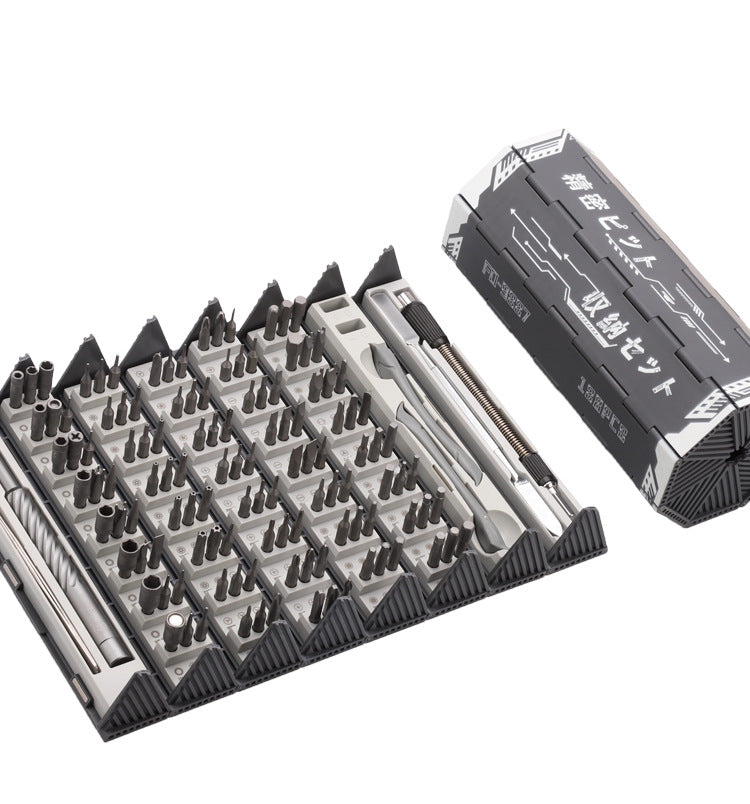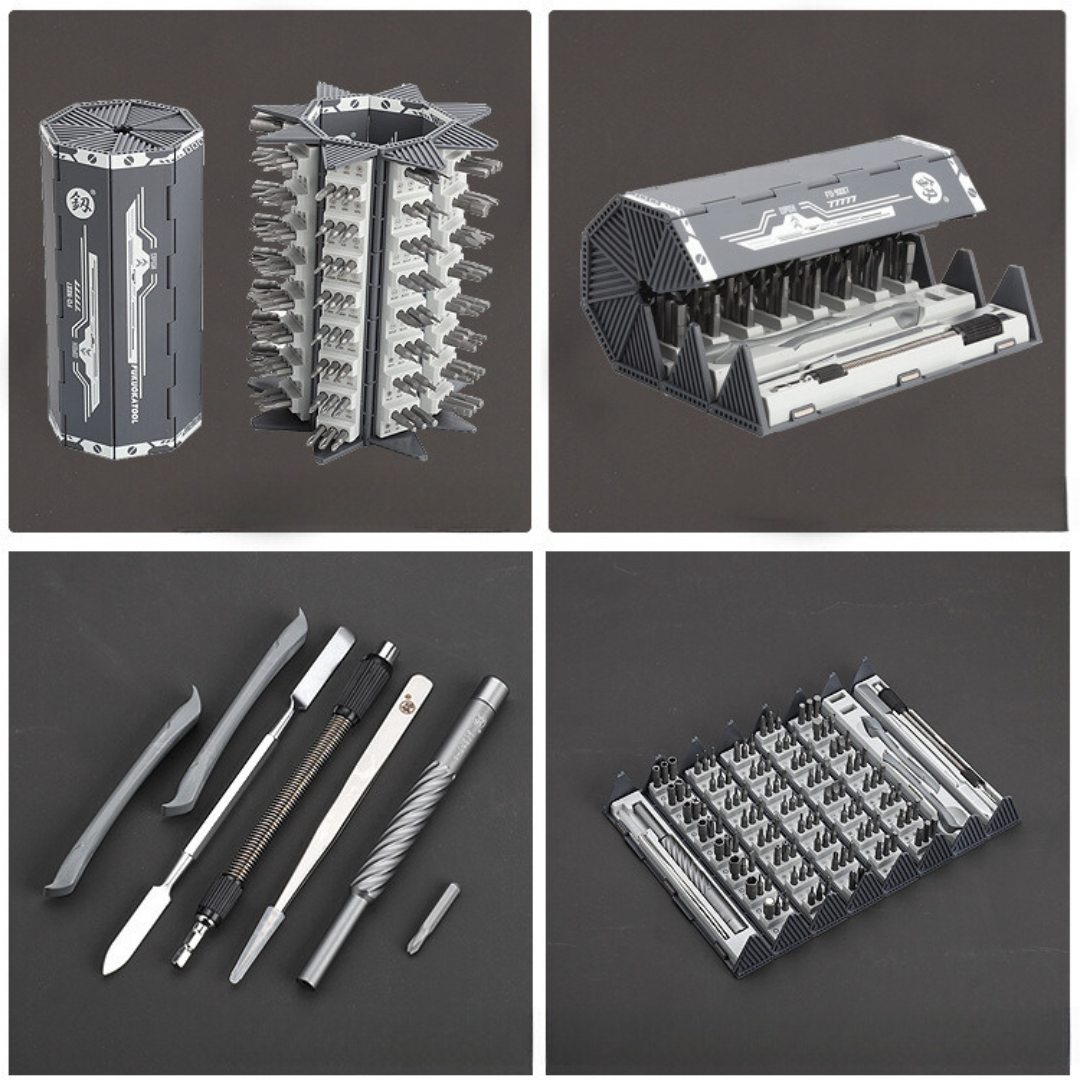 體驗無與倫比的多功能性,我們的128合一螺絲刀套裝。從十字和平頭到Torx,Pentalobe,Triwing等等,這個工具箱擁有128種不同的精密頭,確保您為任何任務做好了準備。無論您是修復筆記本電腦、智能手機、遊戲機還是家用電器,我們全面的套裝都為您提供了正確的工具。
