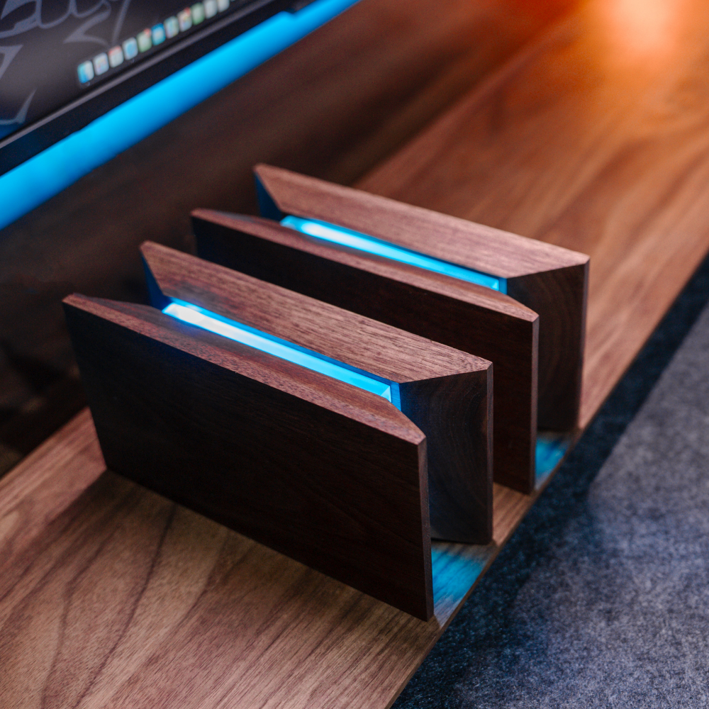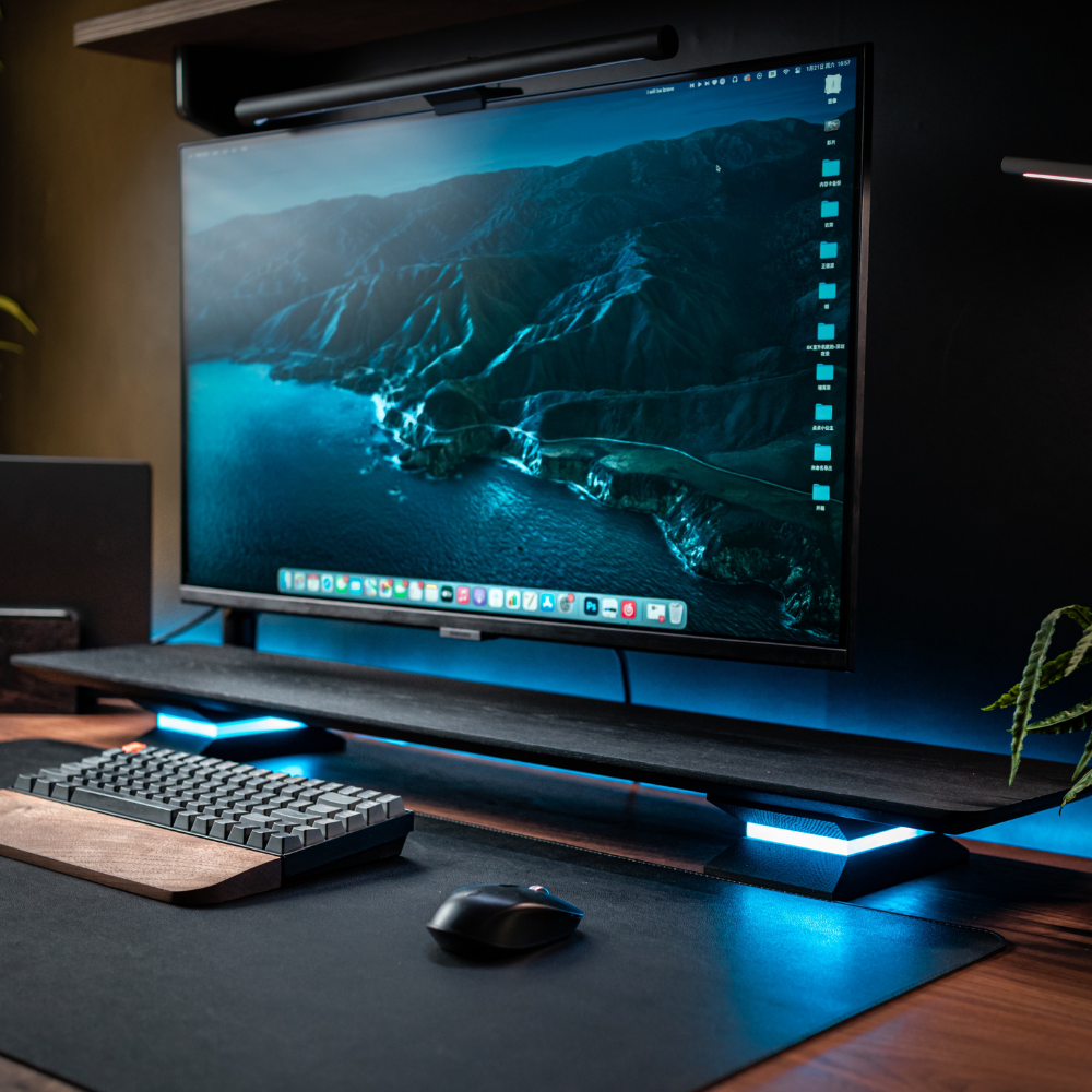 Nordeco 首次推出具備智慧RGB燈光底座的電腦螢幕增高收納木架,具有三款不同的木材顏色可選,分別是中啡色的胡桃木,橡木色及黑木紋的炭黑木材,配合你的辦公及家居需要,馬上提昇你的辨公桌設計感。