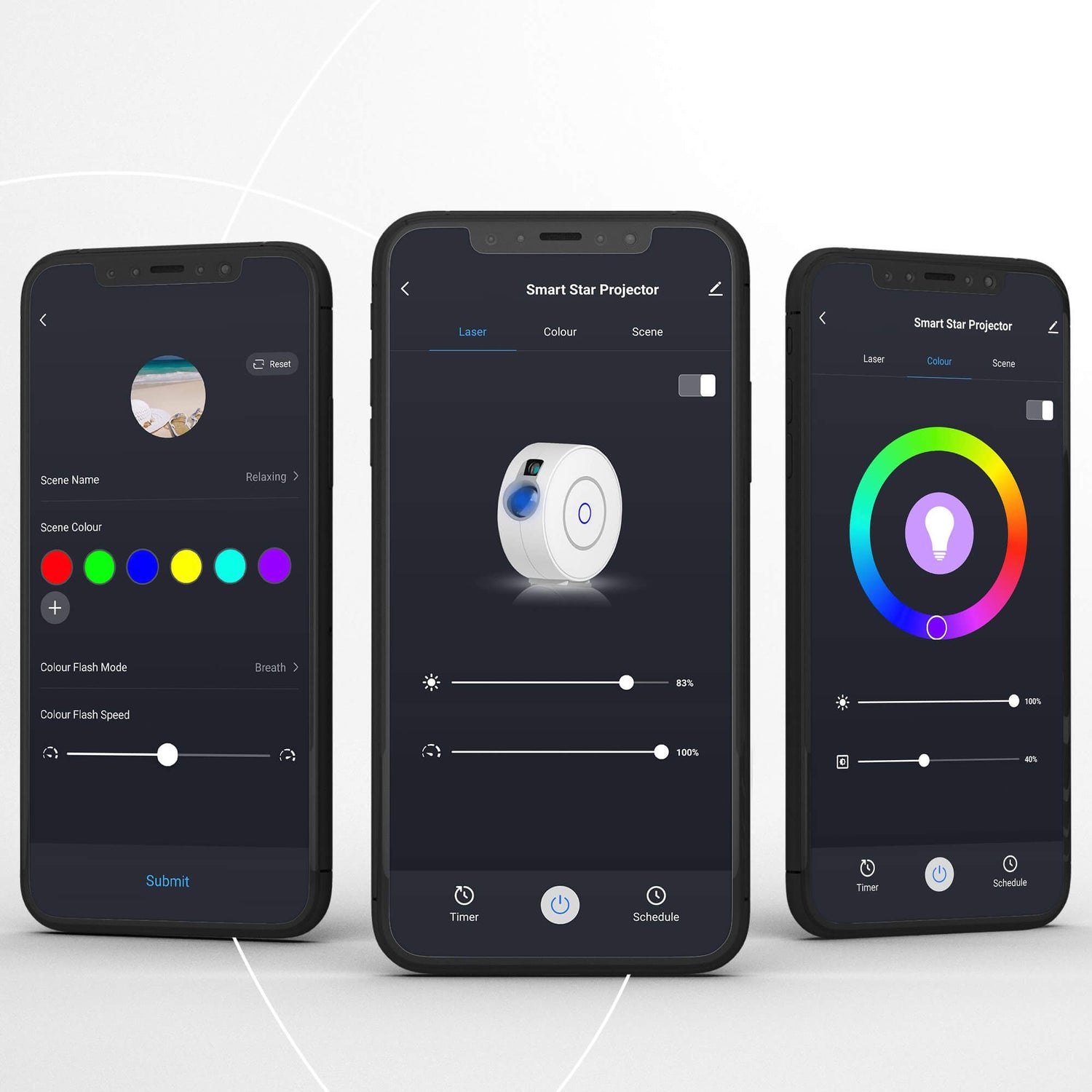 可自選不同的星雲顏色組合及變化,配合APP上的場景模式隨時設置變化。